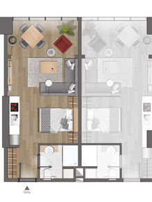 جهاز إنذار (حرائق), فرن, جلاية, باب حديدي, كابين استحمام (بكيدوش), حمام للأبوين, أنترفون مرئي, ح مام أوربي, نوافذ ضد الحرارة, مكيف, حوض الاستحمام, أرضية خشبية, مدخل استقبال