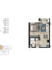 جهاز إنذار (حرائق), فرن, جلاية, باب حديدي, كابين استحمام (بكيدوش), حمام للأبوين, أنترفون مرئي, حمام أوربي, نوافذ ضد الحرارة, مكيف, حوض الاستحمام, أرضية خشبية, مدخل استقبال